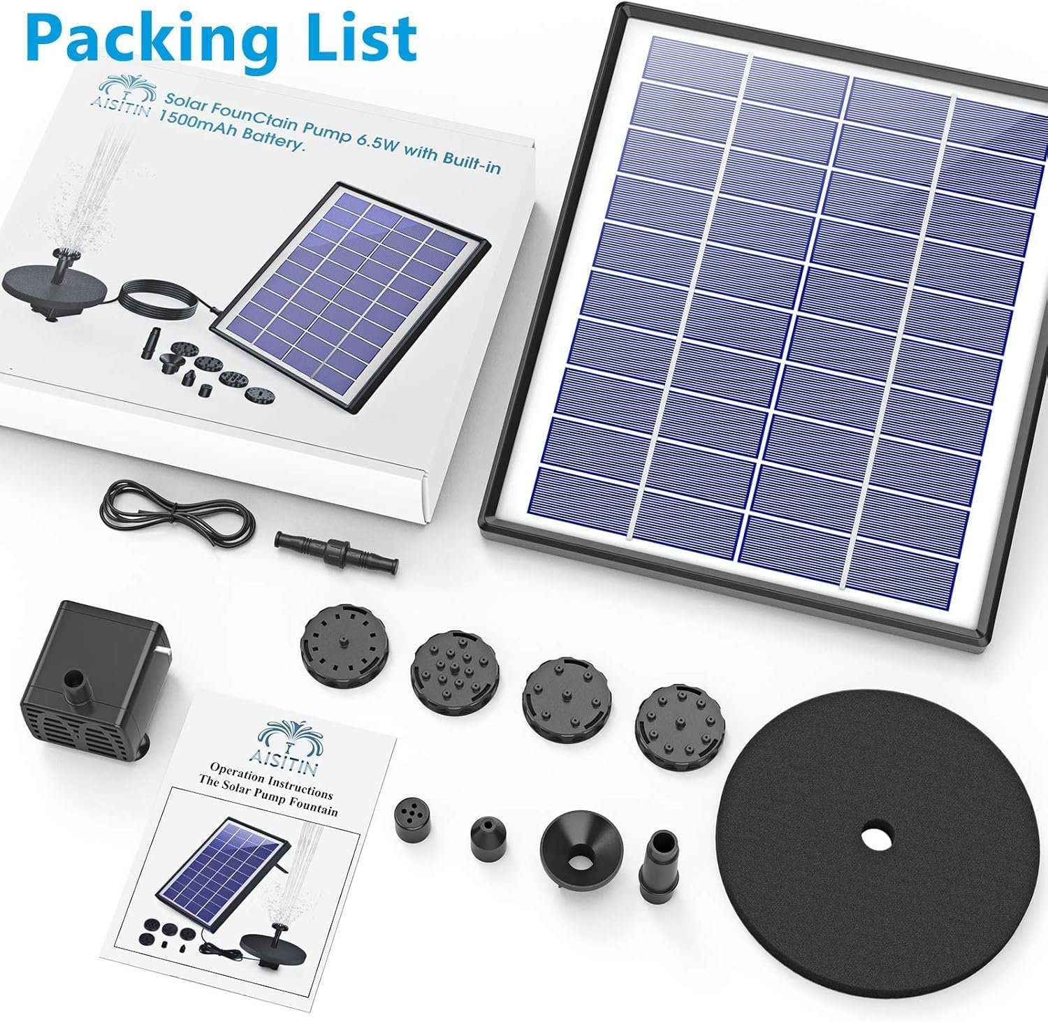 AISITIN 6.5 W Solar Fountain, Built-in 1500 mAh Battery, Upgraded Solar Pond Pump, Water Pump, Solar Floating Fountain Pump with 6 Fountain Styles for Garden, Bird Bath, Pond and Fish Container