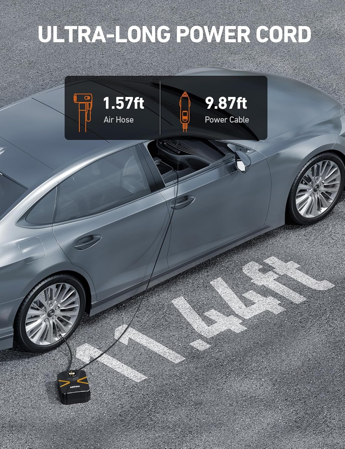 AstroAI Tyre Inflator Air Compressor 12V DC, Digital Car Tyre Pump 150 PSI, Preset Tyre Pressure & Auto Shutoff, Electric Air Pump for Car Tyres, Bicycles, Other Inflatables (Black&Yellow)