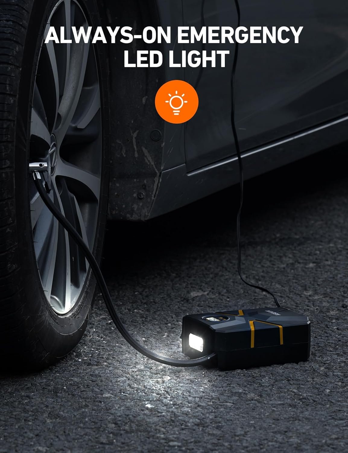 - Ultra-Long Power Cord & Emergency LED Light: With a 0.48 m long air hose and a 3 m long power cord, the car tyre inflator is easily connected to any tyre. The integrated LED light is great for emergencies and working in dark environments. When the digital tyre inflator is powered, the LED light will illuminate.