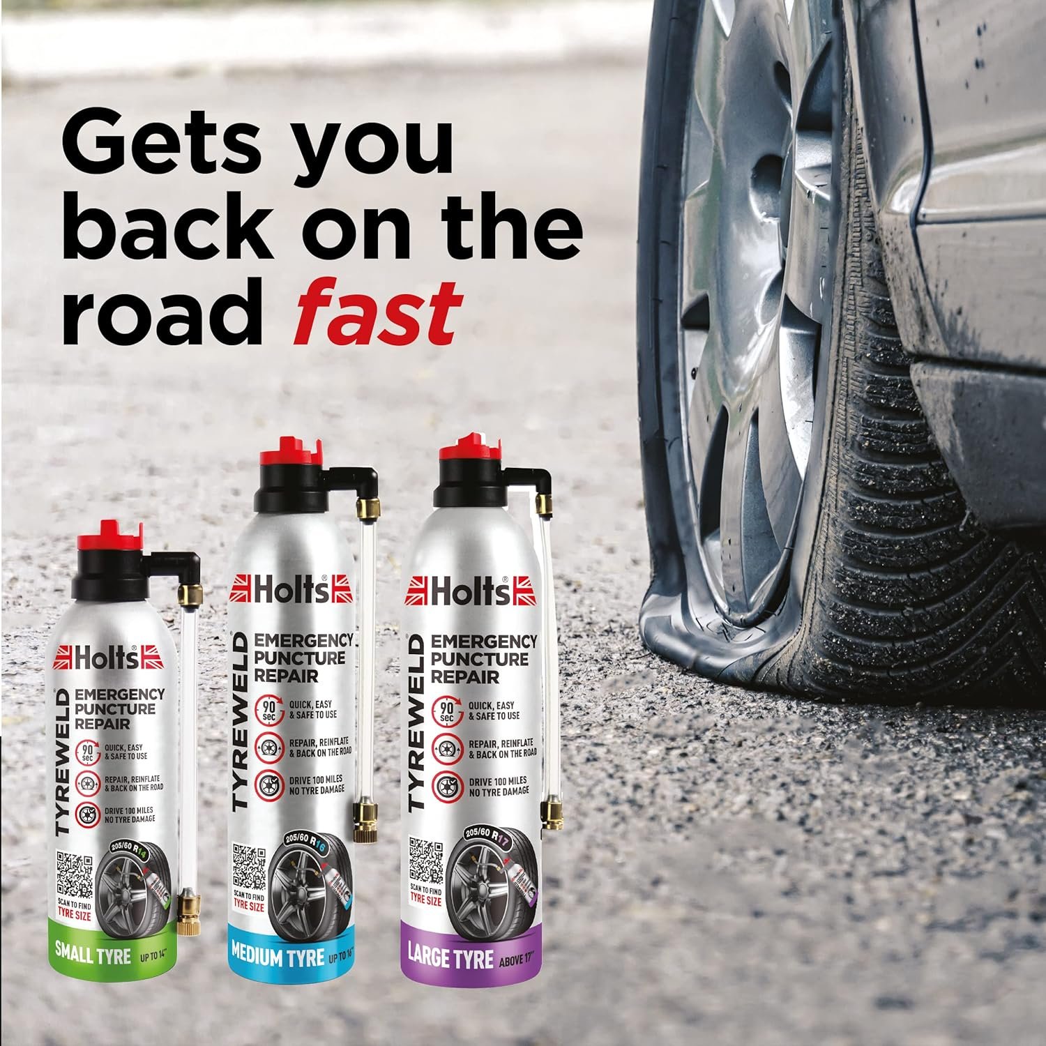 - TYRE REPAIR KIT IN A CAN: Tyreweld Emergency Puncture Repair is designed to temporarily seal a puncture and get you back on the road. With a specially designed formula, this all-in-one solution repairs and reinflates without damaging the tyre.